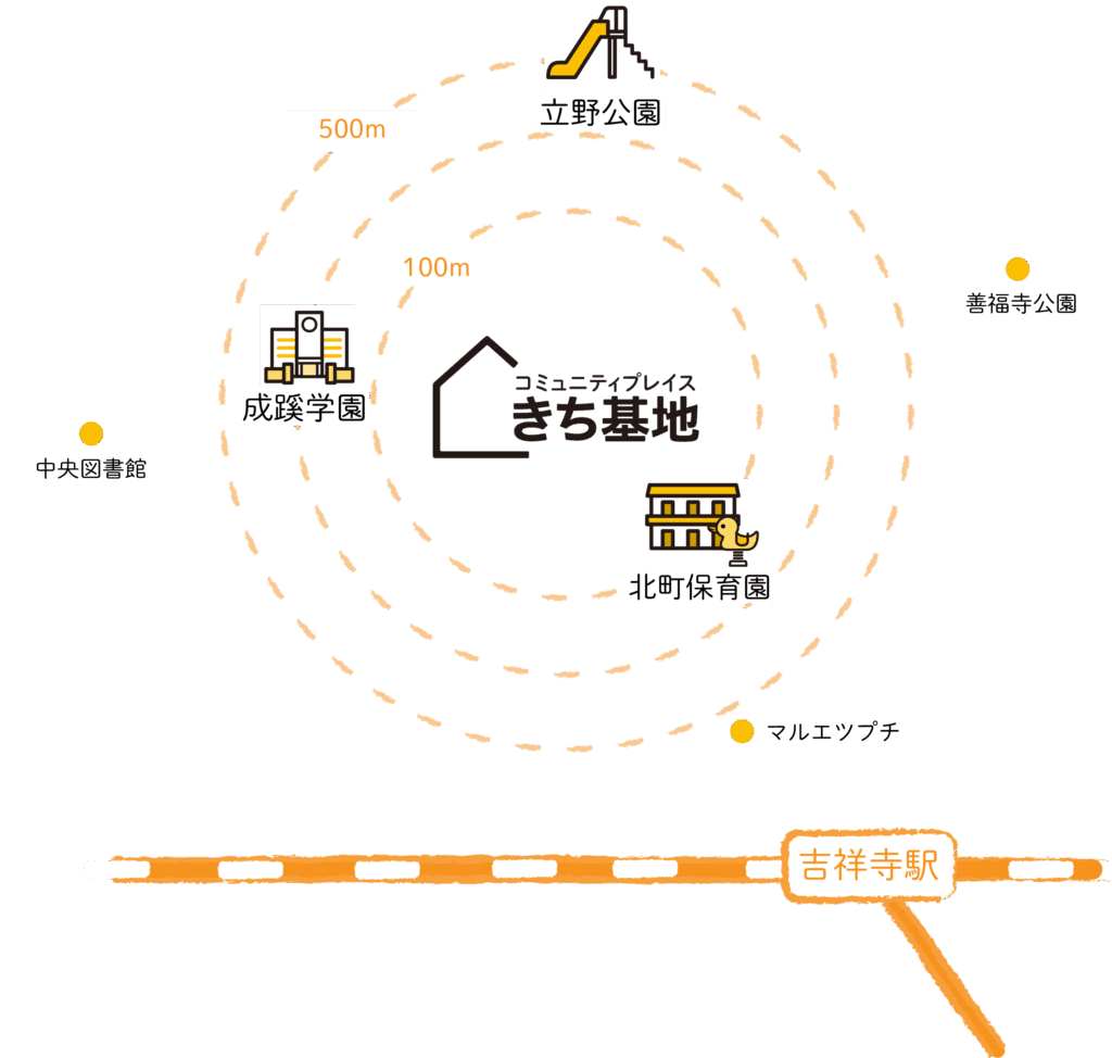 10月24日(金) CLOSE 貸切利用(終日) 貸切予約はこちら アクセス 貸切予約はこちら アクセス Information お知らせ 【11/8】包丁研ぎ イベント準備中 イベント準備中 Calendar カレンダー 営業時間やフリータイムは不定期になります。 当カレンダーをご覧ください。 Floor フロア紹介 フロア紹介 約10畳のゆったりとした空間には、テーブルやイスのほか、ちょっとユニークなアイテムも並んでいます。 昭和26年築の建物の趣が残る空間で、くつろいだり、語り合ったり、学んだり。ここでの時間の過ごし方は、あなた次第です。 おかし工房 フロアの隣には、おかし工房「きち基地キッチン」があります。ここで作った焼き菓子を、きち基地で販売しています。ひと息つきたいときや、おしゃべりのおともにぜひどうぞ。 ※きち基地キッチンは、菓子製造業許可を取得しています。 野菜・果物販売 きち基地で育てた新鮮な野菜や、大田市場・農家さんから直接届く旬の国産果物を販売しています。 ばら売りだから、必要なときに、必要な分だけ。気軽に手にとって、季節の恵みをお楽しみください。 駄菓子販売 色とりどりに並んだ駄菓子たち。昔遊んだあの味に再会できたり、思わず「これ何?」と手に取りたくなるような珍しいお菓子も見つかります。 子どもたちはもちろん、大人にとっても懐かしさと新しい発見がつまった、ちょっとした宝探しのような場所です。 ※お支払いは現金のみとなります。 アクアポニックス 水槽の中では、チョウザメさんが元気に泳いでいます。のびのびと泳ぐ姿を見ているだけで、心がほっと癒されます。 さらに、この水槽では循環する水を活かして野菜も育てています。見て楽しい、そして食べておいしい——そんな2つの楽しみが詰まっています。 ※チョウザメさんがびっくりしちゃうので、水槽は叩かないでね♪ 武蔵野・三鷹グッズ棚 武蔵野市や三鷹市の魅力をぎゅっと集めたグッズ棚です。 吉祥寺の今昔写真集やカルタなど、思わず手に取りたくなるジモトアイテムがずらり。見て触れて、もっとジモトを好きになれるコーナーです。 駐輪場 敷地内には、自転車を停められる駐輪スペースをご用意しています。最大4台まで置けるので、自転車でお越しの方も安心です。 ロッカー きち基地を定期利用される方向けに、鍵付きのロッカーをご用意しています。 貸切利用時に使うものはロッカーに入れて保管しておくことで、毎回持ち込む必要がなくなります。(高さ41cm×幅37cm×奥行き36cm) トイレ 清潔に保たれたトイレを完備しています。元々は押し入れだった、階段下のちょっと小さな空間です。手洗い場には自動泡ハンドソープと消毒もありますのでご利用ください。 About きち基地の使い方 きち基地には「フリータイム」と「貸切利用」の2つの使い方があります。 ご利用の用途に合わせて、お選びください。 フリー利用 (会員登録不要) フリータイム中、お好きな時にぷらっとお越しいただけます。 ・勉強・お買い物・お食事・おしゃべり など 貸し切り利用 (会員登録制) 事前の会員登録とご予約のもと、 指定の時間できち基地のスペースすべてをご利用いただけます。 ・集中したい作業・お打ち合わせ・各種教室・講座、勉強会 など 会員登録制:貸切利用をする前に、利用用途、利用者数、利用日に必要なものなどを事前に確認させていただきます。お話を伺った結果、お貸出しできない可能性もございますので、ご了承ください。 なお、会員登録費として500円(税込)頂戴しますが、会員登録特典として3時間無料できち基地を貸切利用できます。 Price 貸切料金 会員登録済みの方のみご利用可能です。 会員登録や貸切予約に関するお問い合わせは、公式LINEにてお問合せください。 1回 利用 1,500円 (税込) (3時間) 4回 パック 5,000円 (税込) (3時間✖️4回) お支払い方法 請求書 PayPay 現金 (当日) Equipment 設備紹介 無料 Wi-Fi SSID、PWは利用時にお伝えします。 イス 大小様々な椅子が6脚 電源 パソコンやスマホの 充電にご利用ください。 テーブル 会議用が3台、ローテーブルが1台 黒板 700mm×800mm×2枚 (壁掛け) 有料 鏡 1800mm×1000mm (事前予約制/500円) プリンター インクジェット (会員10円/枚、非会員15円/枚) ラミネーター A4、A3対応 (会員 100円/枚、非会員 150円/枚) この他にもお貸出しできるものがあります。 利用時にぜひお問合せください。 公式LINEを友達追加すると、イベント情報をいち早く入手できます! また、貸切利用に関するお問合せも個別にお答えします。 公式LINE About us きち基地について Instagramで発信中! kichijojibase フォローする Access アクセス ・電⾞ JR吉祥寺駅から徒歩20分・バス ムーバス吉祥寺北⻄循環 25番 北コミセン前から徒歩1分 経路を調べる